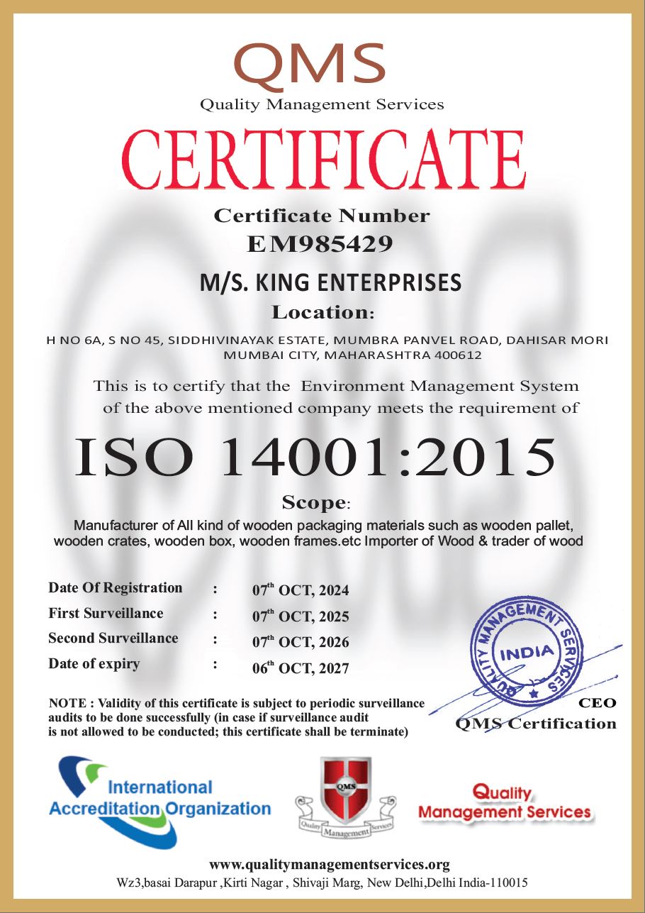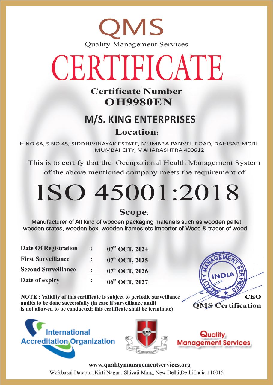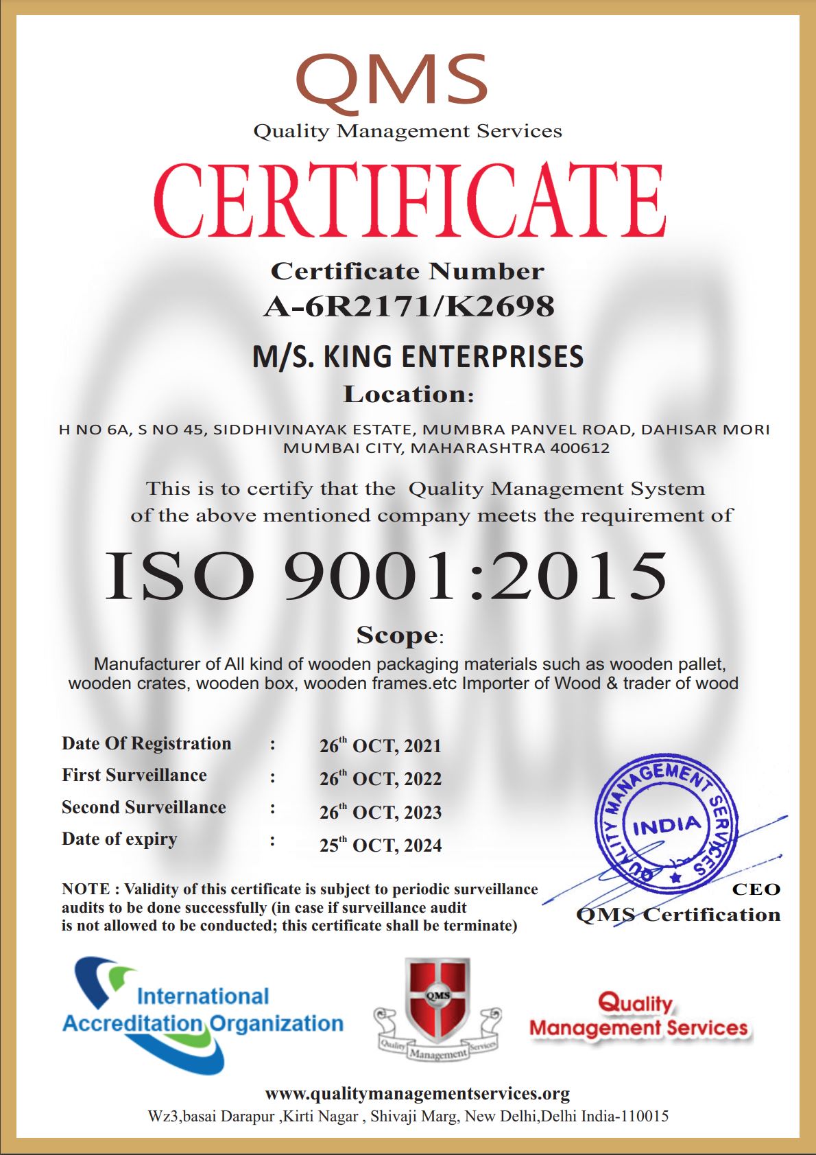 - At King EnterprisesTM, all products are manufactured with state-of-the-art equipment and have every segment of machinery essential to manufacture a wooden packaging material in any customised size with accuracy and client satisfaction.